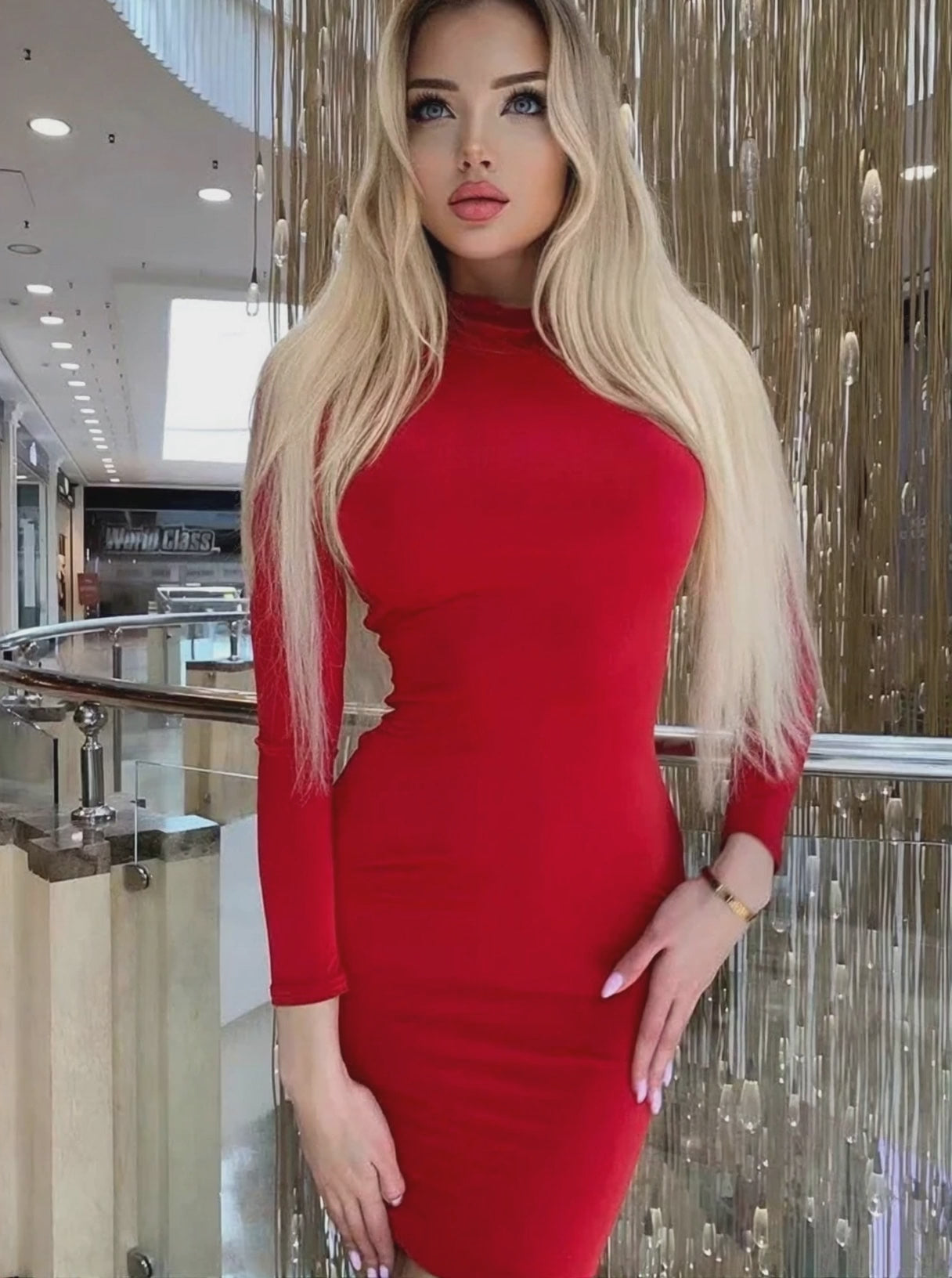 PromoRobe noire moulante midi à manches longues et col roulé, idéale pour soirée ou cocktail.Robe noire moulante longue avec fente et manches longues pour soirée élégante et chic.