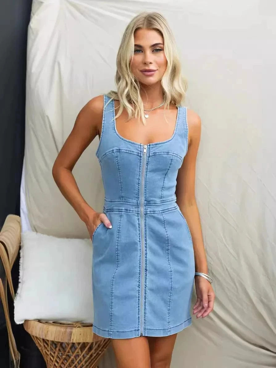 -27,00€robe courte en jean décontractée à zip avant, style casual chic idéale pour l'été et les journées ensoleilléesrobe courte en jean décontractée à zip avant, idéale pour un look casual tendance au quotidien