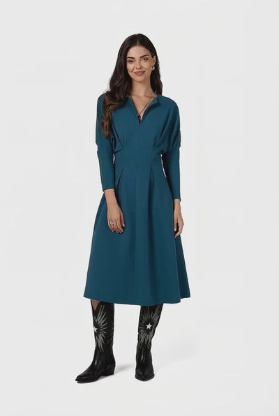 Élégance intemporelle et confort se rencontrent dans notre robe habillée à manche longue, conçue pour sublimer votre silhouette tout en offrant une aisance inégalée. Cette pièce polyvalente s'adapte parfaitement à diverses occasions, des réunions professionnelles aux soirées élégantes. Associez-la à un blazer cintré pour une touche d'élégance professionnelle, ou choisissez des accessoires dorés pour une allure soirée. Les bottines à talon complèteront le look avec sophistication, tandis que les poches latérales vous apporteront une fonctionnalité bienvenue. Sa composition en coton et élasthanne promet durabilité et confort, faisant d'elle un incontournable de votre garde-robe.