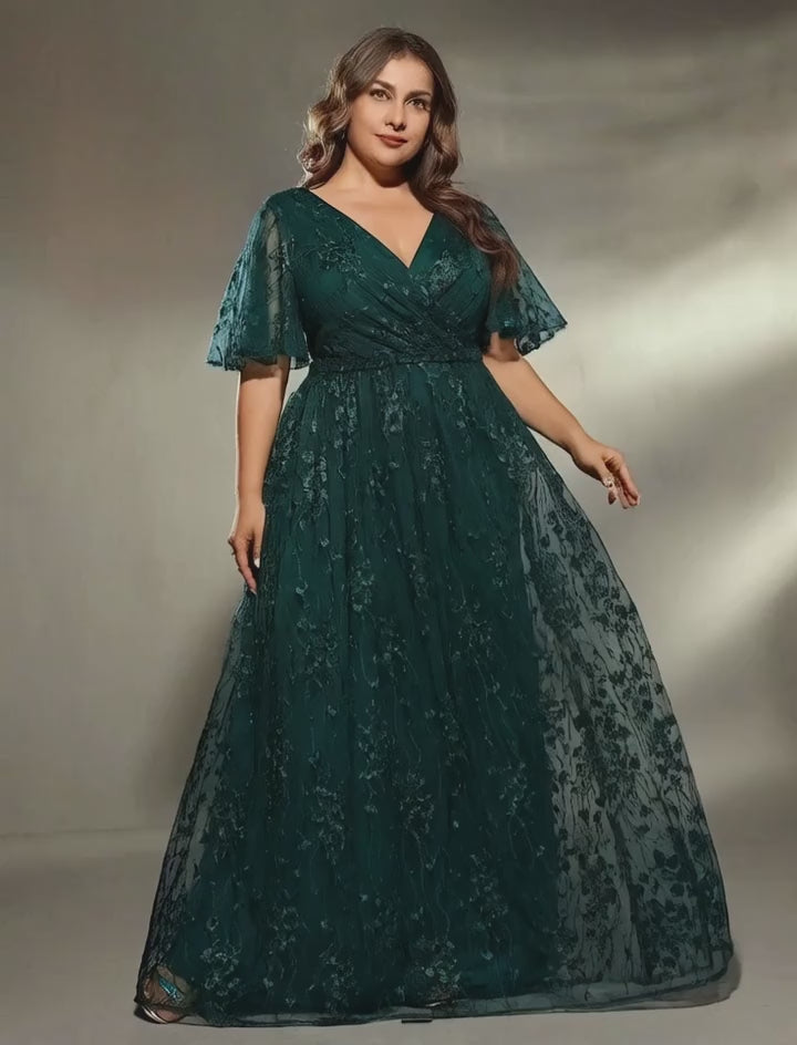 Sublimez votre silhouette à chaque occasion avec notre robe amincissante conçue spécialement pour flatter les formes généreuses. Cette élégante robe verte est parfaite pour célébrer un mariage. Elle fait rimer mode et confort, sans sacrifier l'un pour l'autre. Dotée de manches papillon et d'un col en V, elle offre à la fois liberté de mouvement et une touche de sophistication. Grâce à la coupe cintrée et évasée, cette robe flatteuse promet de mettre en valeur votre silhouette tout en restant confortable pour une journée entière de festivités. Pensée pour la femme moderne qui assume ses rondeurs, cette pièce maîtresse de votre garderobe est intemporelle et versatile pour toute saison.