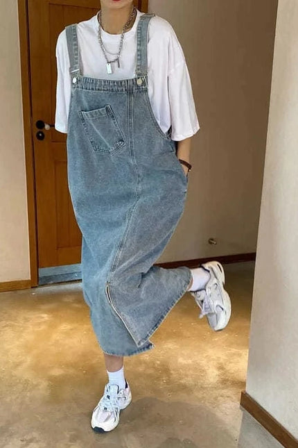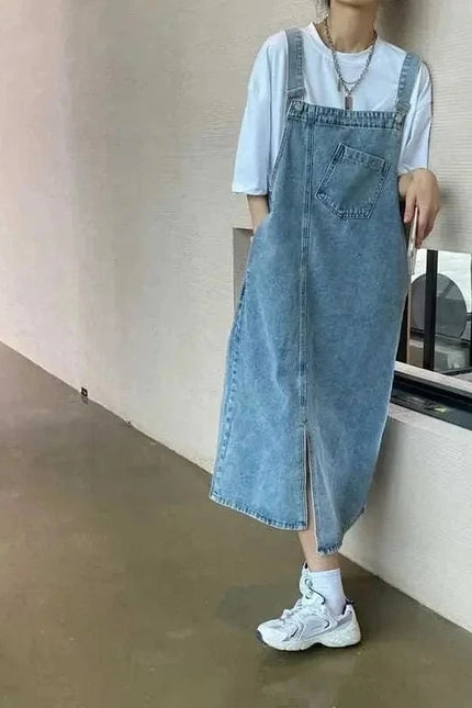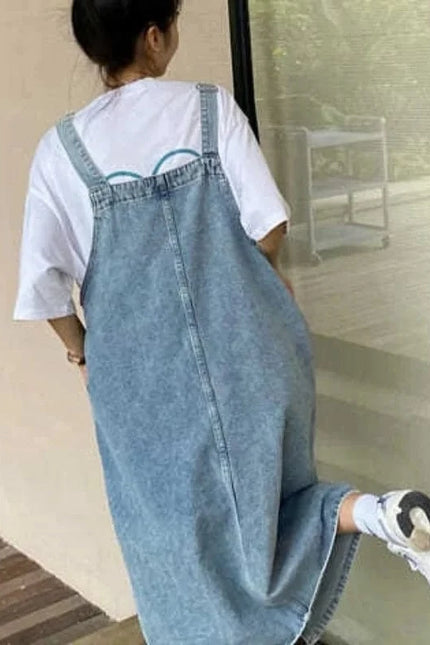 Découvrez notre robe casual salopette midi en jean, une pièce iconique qui allie confort et style. Confectionnée en denim de qualité, elle présente une coupe droite qui sublime toutes les silhouettes. Ses bretelles élégantes et son col slash neck apportent une touche féminine et tendance, idéale pour un look effortless. Les poches pratiques ajoutent une note utilitaire, parfaite pour une allure streetwear chic. Associez cette robe avec un t-shirt ajusté pour une tenue décontractée ou un pull oversize pour un style bohème irrésistible. En été, mettez une paire de sandales minimalistes, et en hiver, osez le layering avec un col roulé et des bottines. Une robe polyvalente qui traverse les saisons avec aisance et élégance.