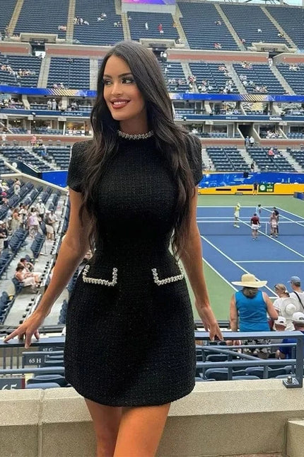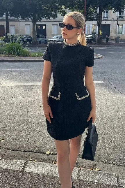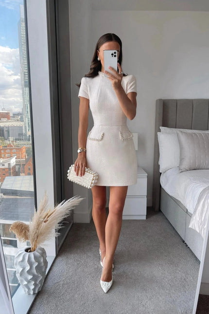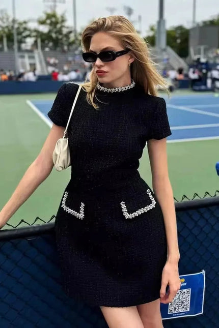 Découvrez notre robe de soirée chic courte, l'incarnation parfaite de l'élégance minimaliste. Sa coupe A-line au-dessus du genou met en valeur vos jambes tout en préservant une silhouette raffinée. Le col semi-ouvert apporte une touche de sensualité subtile qui se marie parfaitement avec les manches courtes pour un look sophistiqué et moderne. Confectionnée en polyester de haute qualité, cette robe offre un léger stretch pour épouser vos courbes avec élégance. Les poches discrètes ajoutent une dimension pratique à ce modèle d'exception. Associez-la à des escarpins et une pochette minimaliste pour un look de soirée irrésistible, ou décontractez-la avec des sandales plates pour un cocktail en été. Cette pièce versatile deviendra rapidement l'incontournable de votre garde-robe !