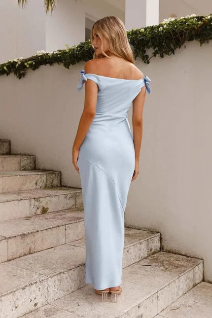 Robe demoiselle d'honneur longue chic bleue