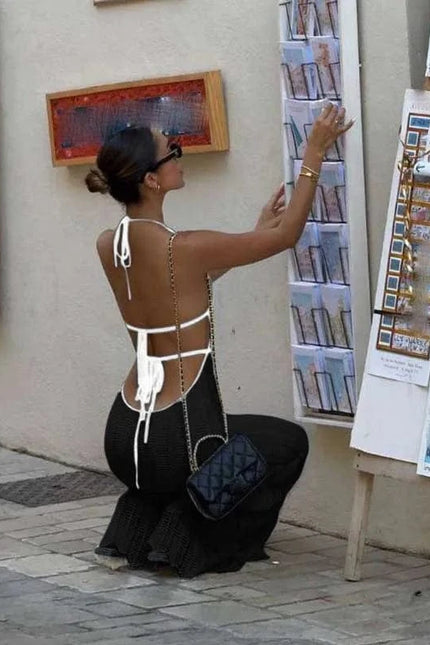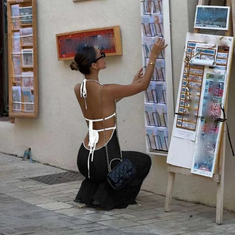 Laissez-vous séduire par cette robe longue dos nu au crochet aérien, parfaite pour vos journées ensoleillées ! La coupe ample et fluide épouse délicatement vos courbes, tandis que le détail sexy du dos nu apporte une touche d'audace sophistiquée. Son tissu polyester de qualité offre un confort optimal avec une élasticité moyenne qui s'adapte à tous les mouvements. Le travail de crochet artisanal évoque un esprit bohème chic idéal pour vos escapades estivales. Associez-la à des sandales plates pour une journée à la plage, ou rehaussez-la de bijoux dorés et talons compensés pour une soirée d'été ! La longueur cheville allonge votre silhouette et le col en V met subtilement en valeur votre décolleté. Une pièce incontournable qui marie sensualité et élégance pour un style résolument contemporain.