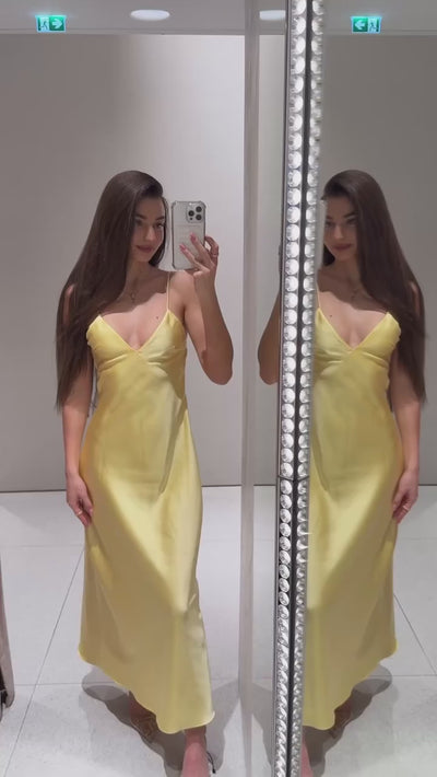 Découvrez cette magnifique robe longue jaune dos nu satinée Yenkye qui redéfinit l'art de la séduction moderne. Cette création longue en satin polyester arbore une silhouette flatteuse avec un décolleté en coeur sophistiqué et des bretelles spaghetti délicates. Le dos nu audacieux révèle juste ce qu'il faut de peau pour un effet saisissant, tandis que la taille empire sublime votre silhouette naturelle. Cette robe sans manches aux lignes épurées se marie parfaitement avec des sandales à talons métallisés pour un look de soirée irrésistible, ou avec des baskets blanches pour un style casual-chic inattendu. Sa coupe régulière convient à toutes les morphologies et son coloris jaune éclatant apporte une dose d'optimisme instantanée à votre garde-robe estivale.