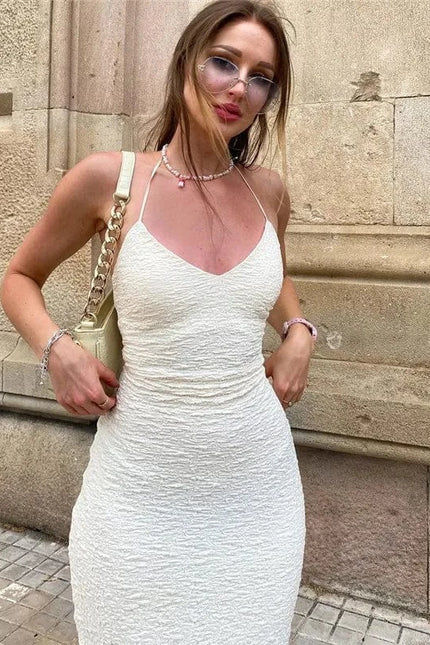 Illuminez vos soirées d'été avec cette robe midi moulante qui redéfinit l'élégance sensuelle. Son design dos nu audacieux capture instantanément l'attention, tandis que sa coupe midi épouse parfaitement vos courbes pour un effet sexy irrésistible. Confectionnée en polyester et spandex de qualité supérieure, cette robe offre un confort exceptionnel même lors des soirées les plus chaudes. Son col profond met délicatement en valeur votre décolleté, tandis que la fermeture en dentelle ajoute une touche de sophistication unique. Associez-la à des sandales à talons et à un sac clutch minimaliste pour un look de soirée parfait, ou avec des espadrilles et un chapeau de paille pour une allure bohème chic lors de vos sorties en journée. Cette robe d'été polyvalente deviendra rapidement l'incontournable de votre garde-robe estivale !