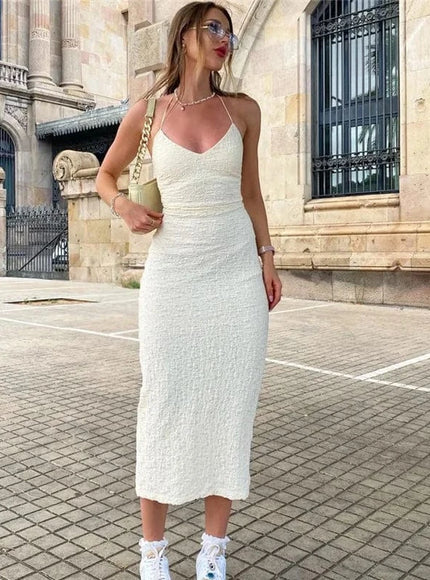 Robe midi blanche pour été dos nu moulante
