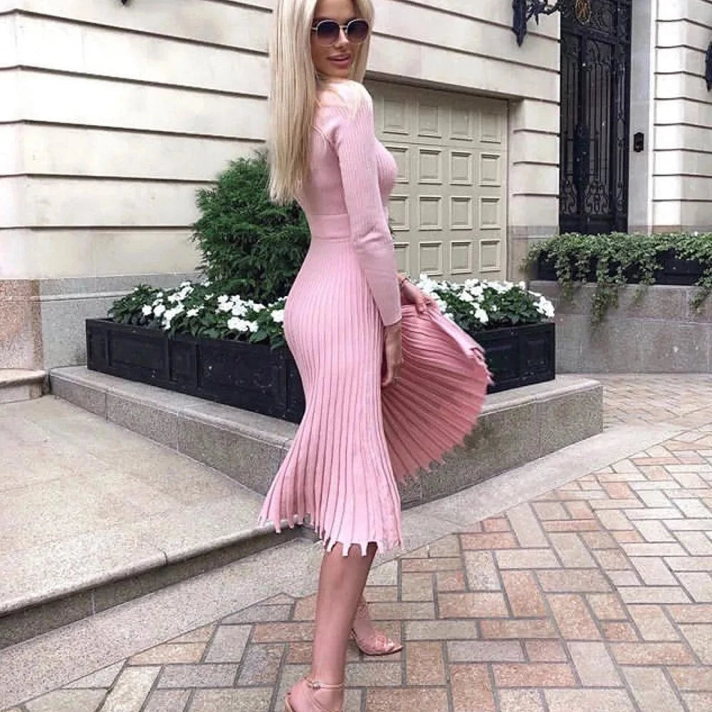 Découvrez cette robe midi en maille côtelée plissée manches longues qui révolutionne votre garde-robe automne-hiver. Sa silhouette A-line épouse délicatement vos formes grâce à sa coupe slim et sa maille ultra-extensible en polyester. Les détails patchwork apportent une dimension moderne à ce modèle casual chic, tandis que sa longueur mi-mollet sublime toutes les morphologies. Portez-la avec des bottines en cuir et un blazer oversize pour un look urbain sophistiqué, ou associez-la à des sneakers blanches et un trench pour une allure parisienne décontractée. Son col rond intemporel et ses manches longues régulières en font la pièce polyvalente parfaite pour transitionner du bureau aux sorties entre amis avec une élégance naturelle.