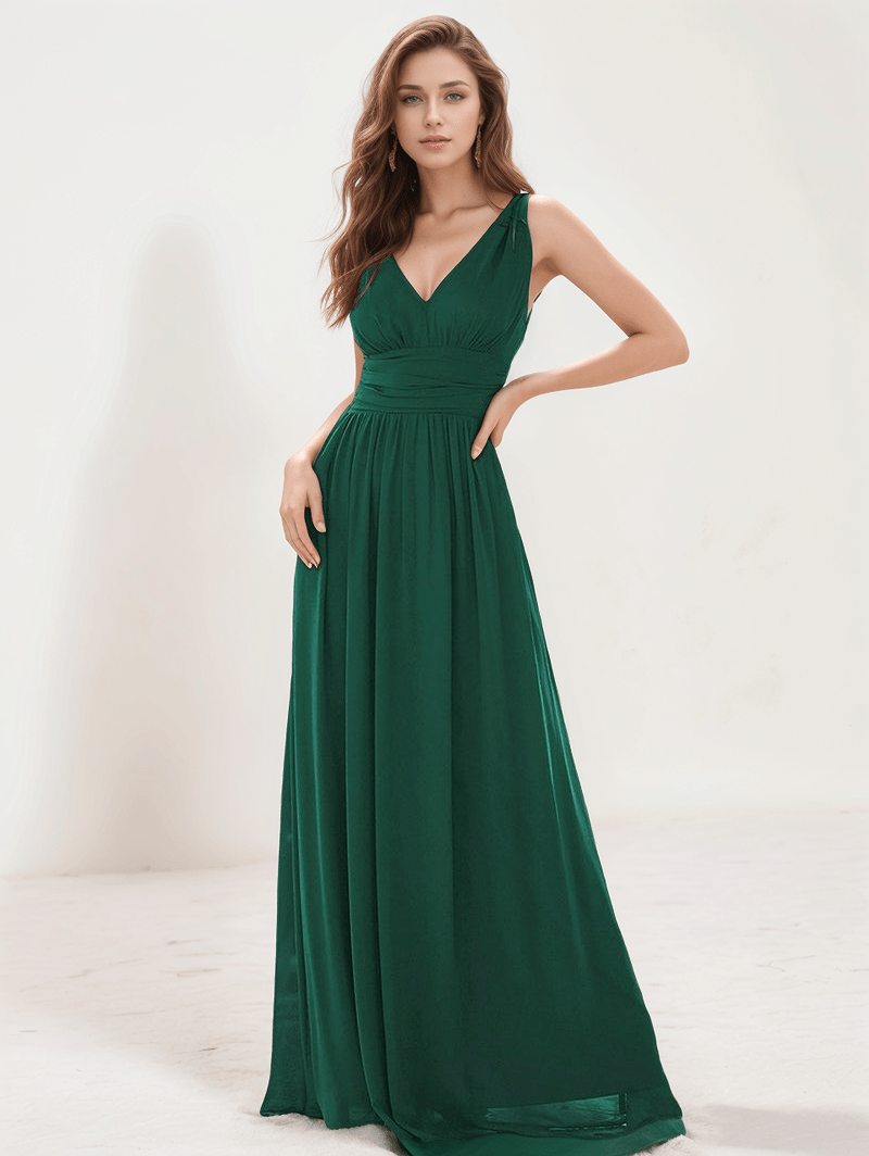 Cette robe de soirée longue verte sans manches incarne l'allure sophistiquée de la femme moderne. Sa teinte émeraude profonde capture la lumière avec une intensité captivante, rappelant les tendances des podiums parisiens. La coupe fluide épouse délicatement vos courbes tout en offrant une liberté de mouvement incomparable. Le décolleté subtil révèle votre féminité avec une élégance mesurée, tandis que la longueur majestueuse crée une silhouette statuesque. Cette pièce d'exception se marie parfaitement avec des bijoux dorés pour un contraste audacieux, ou avec des accessoires argentés pour une harmonie raffinée. L'absence de manches met en valeur vos bras et votre décolleté, créant un jeu de proportions parfaitement équilibré. Cette robe transformera instantanément votre garde-robe en collection haute couture.