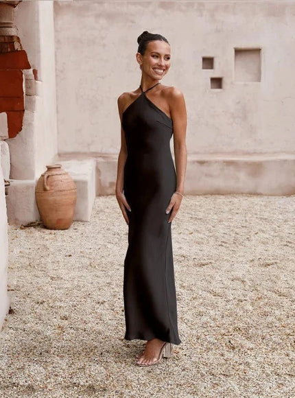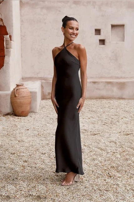 Laissez-vous séduire par cette sublime robe dos nu longue, parfaite pour être une invitée de mariage élégante et remarquée. Sa coupe longue jusqu'aux chevilles et sa silhouette en A épousent délicatement chaque morphologie, tandis que le design halter met en valeur vos épaules avec une finition sophistiquée. Le dos complètement dénudé apporte une touche sensuelle et distinguée, idéale pour les cérémonies estivales. Associez-la à des sandales à talons minimalistes et une pochette perlée pour un look complet. Les bretelles spaghetti offrent maintien et légèreté, parfaites pour danser jusqu'au bout de la nuit sans inconfort. Cette robe de soirée polyester de haute qualité garantit une tenue impeccable, même lors des célébrations les plus animées !