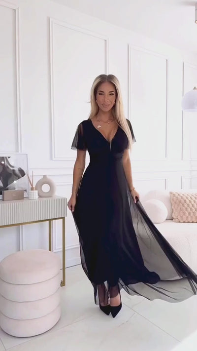 Élégante, féminine et romantique, la robe de soirée en tulle est une invitation au raffinement. Avec son tulle noir léger, cette création sublime la silhouette tout en offrant une fluidité gracieuse. Son décolleté subtil et ses manches courtes apportent une touche délicate, tandis que les bonnets rembourrés garantissent un maintien impeccable. La ceinture nouée à la taille accentue la silhouette avec élégance, rendant cette robe idéale pour une soirée spéciale ou un événement mémorable. Confectionnée en Europe, elle allie une qualité exceptionnelle et un style intemporel. Assurez-vous d’être au centre de l’attention avec cette pièce incontournable pour les occasions chics.